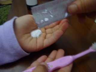 それとイチゴ味が女の子の心を掴むようで、またスースーとしたミント感が無いのも、子供的には使いやすいようで、手に粉を取り、面白がって1w分続けて使ってくれました。