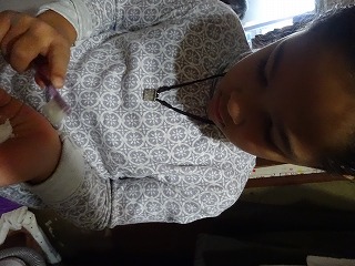 先ず、いつもと違う形状に面白がって、率先してやってくれました。