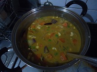 適当にお野菜を入れて、ココナッツミルクとお水でペーストを溶き、