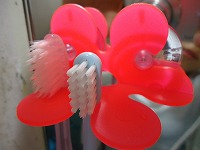 下半分を、ポコっと手前に谷折りして、吸盤で貼り付けます。